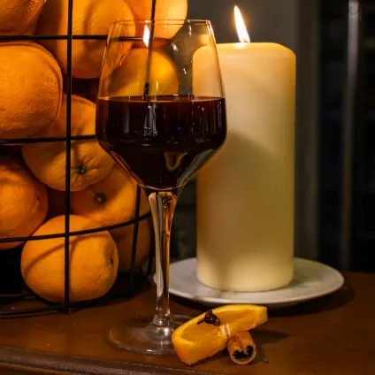 Drie glazen wijn, warme hapjes en etagère gevuld met koude hapjes. Tevens zijn er ook alcoholvrije wijnkeuzes mogelijk.
